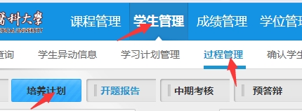 2.导师审核:完成的培养计划需提交导师审核,经导师同意后方可打印成书面版本上交A片漫画 。导师登录系统后,进入学生管理——过程管理——培养计划,可查询学生填写的培养方案并进行审核,导师也可驳回学生的培养计划,经学生修改后再次提交审核,操作办法详见附件1。