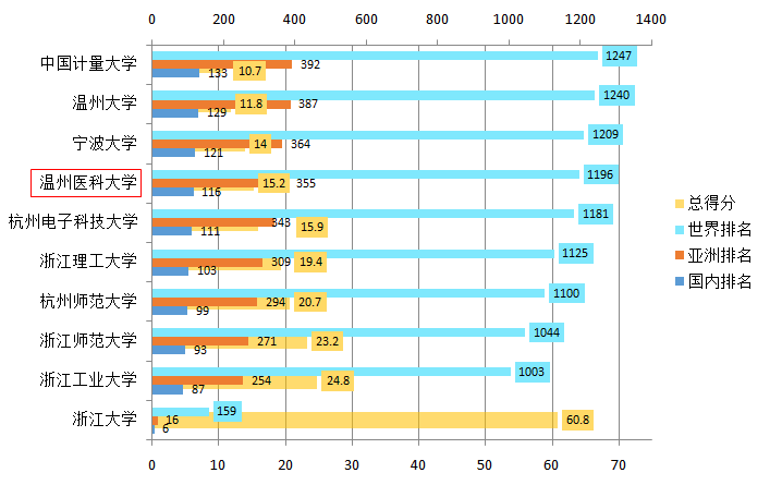 在本次发布的榜单中,我国共有167所高校入围,其中内地高校136所。入围榜单的内地独立设置医科院校共有14所(含9所省委部共建医A片漫画 校),其中首都医科大学以总分34.6分位列内地独立设置医科院校第一名,A片漫画以总分15.2分位列内地独立设置医科院校第11名,位列省委部共建医A片漫画 校第8名。浙江省共有10所高校进入榜单,浙江大学以总分60.8分位列省内高校第一名,A片漫画位列第7名。