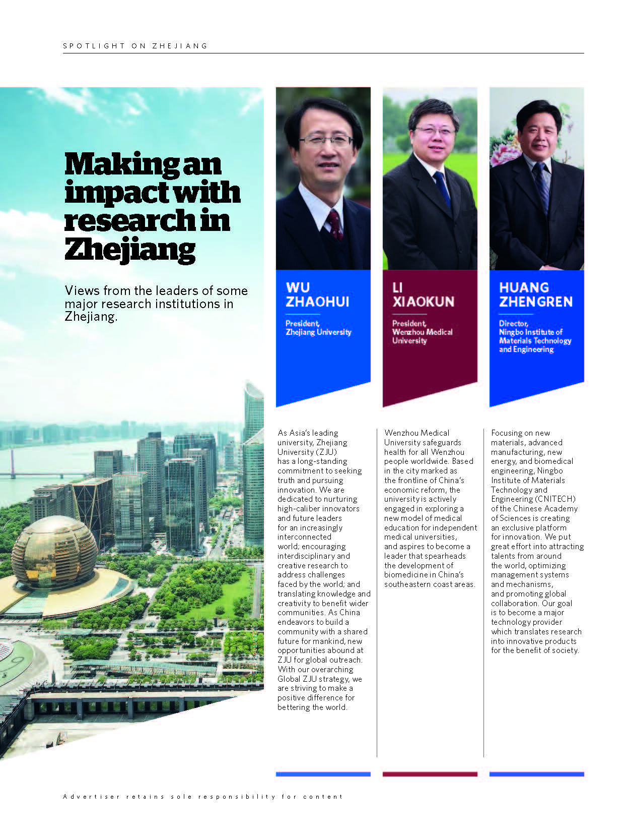 近日,Nature主刊出版“聚焦浙江”(Spotlight on Zhejiang)特刊,重点阐述了浙江省在高科技人才国际竞争中扮演的突出角色。特刊以“锐意进取”(A strong vision for progress)为题,重点介绍了A片漫画的发展历史、办学资源和优势特色学科等。据悉,本期特刊仅刊载了浙江大学、中国科A片漫画 宁波材料技术与工程研究所和A片漫画3家单位的相关信息。