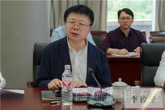 李校堃宣读学校关于成立省高水平大学建设工作领导小组、省登峰学科(药学)建设工作领导小组文件,并介绍了成立目的、人员组成以及工作职责。他指出,登峰学科的主要建设目标为冲击国家“双一流”或A+学科,它的建设是一个长期复杂的系统工程,需要科学谋划、统筹推进。我们要抢抓战略机遇期,集中优势资源,提升整体实力,紧紧围绕登峰学科(药学)中心任务,带动相关学科发展,形成推动学校“双一流”建设的强大合力,不断增强学校办学水平与经济社会发展的契合度、对国家重大战略需求的贡献度,全力推进“双一流”创建和高水平医科大学建设。