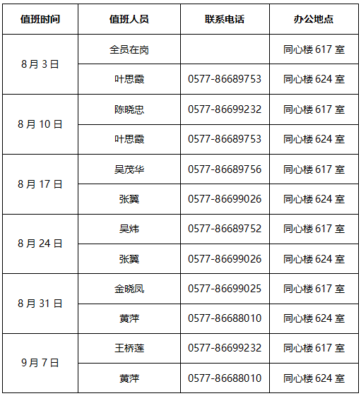2020年8月3日至9月10日为A片漫画-A片漫画app 暑假时间,期间每周一上午8:30-11:30安排人员值班,请需要在暑假期间办理相关事务的研究生注意值班时间。